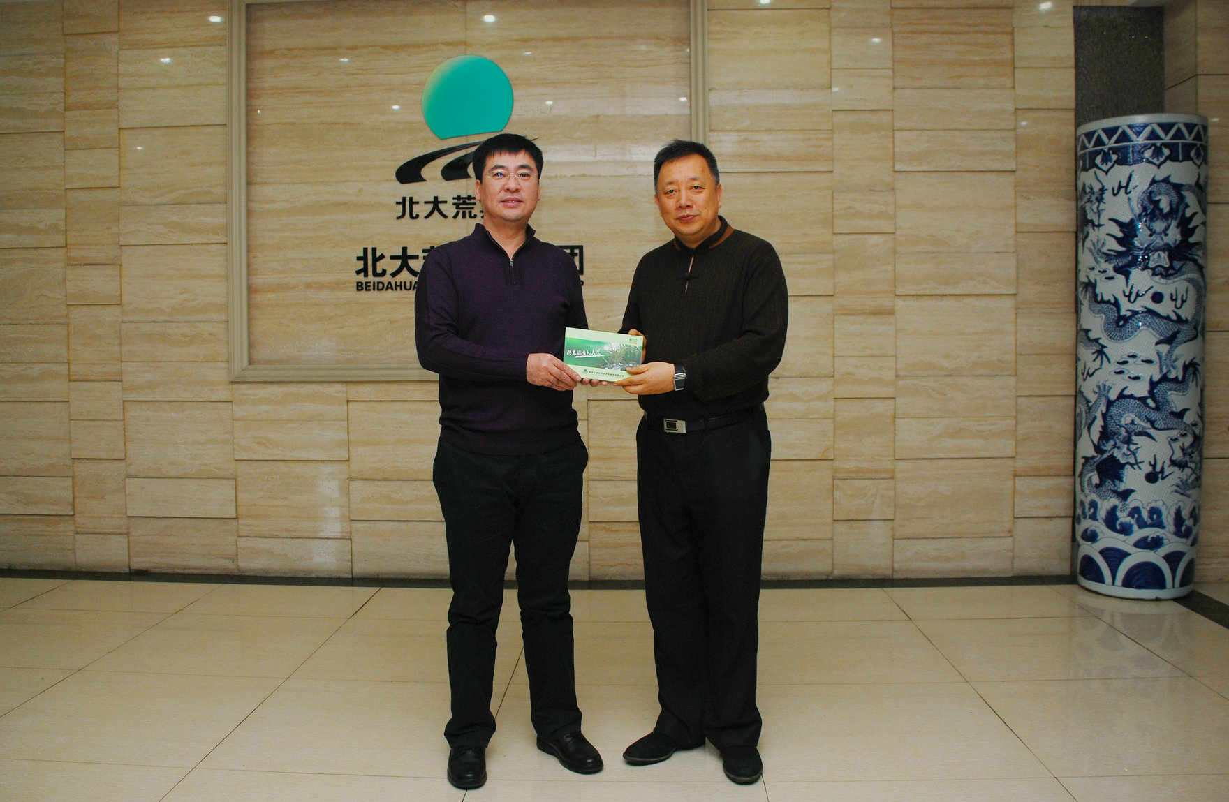 圖為:北大荒米業(yè)董事長修孝軍與正大管理學院湯之敏教授合影
