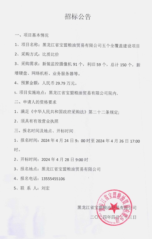 黑龍江省寶盟糧油公司五個全覆蓋建設項目招標公告