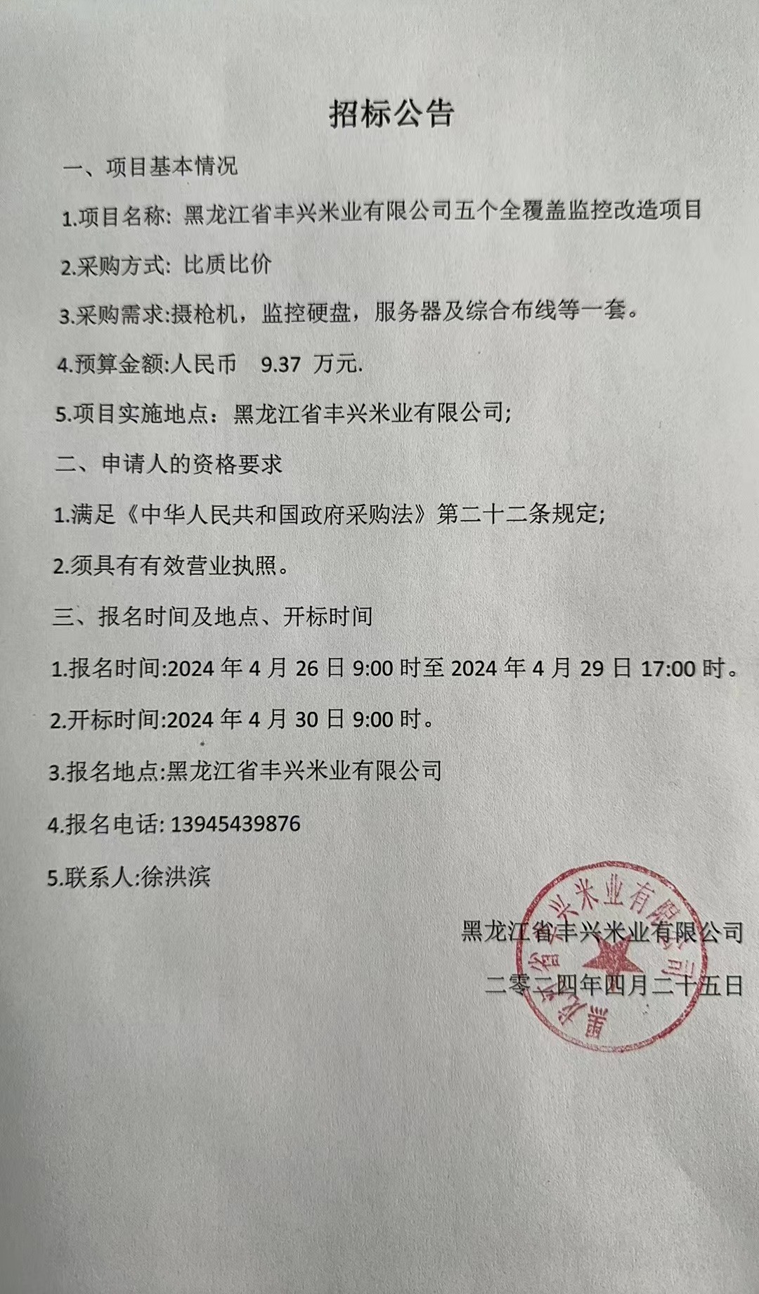 黑龍江省豐興公司五個全覆蓋監控改造項目招標公告