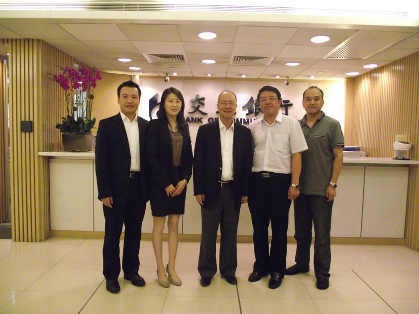 圖為黨委書記魏成霖(右二)一行與交通銀行負(fù)責(zé)人合影